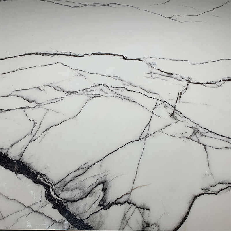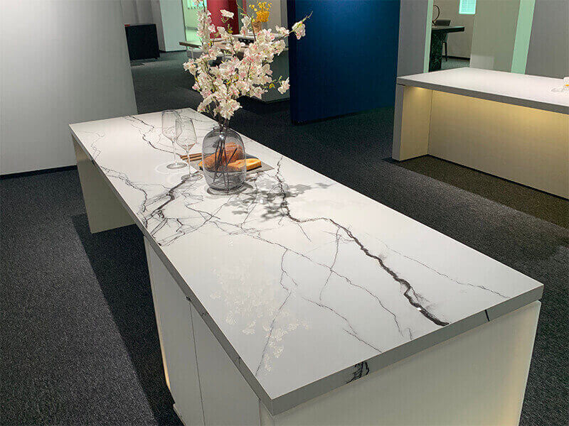 White Sintered Stone Top With Black Pattern Kitchen Island Table And Tea Table