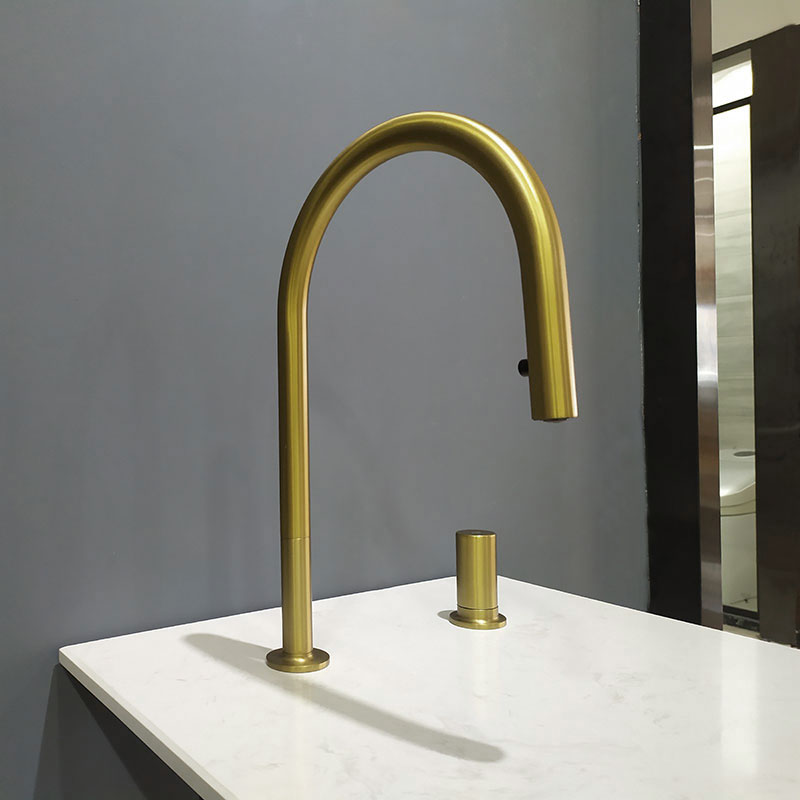 Brush Gold Pull Down Kitchen Mixer Hidden Sink Double Hole Cupc Commercial Brass Kitchen Faucet