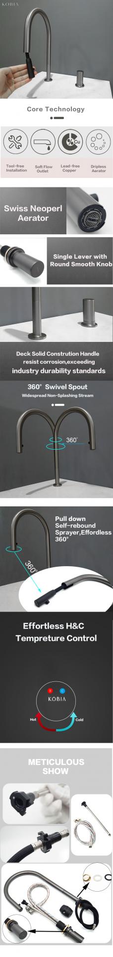 Faucet Supplier Single Handle Deck Mount Kitchen Faucet Gun Black Kitchen Sink Faucet with Pull Down Sprayer