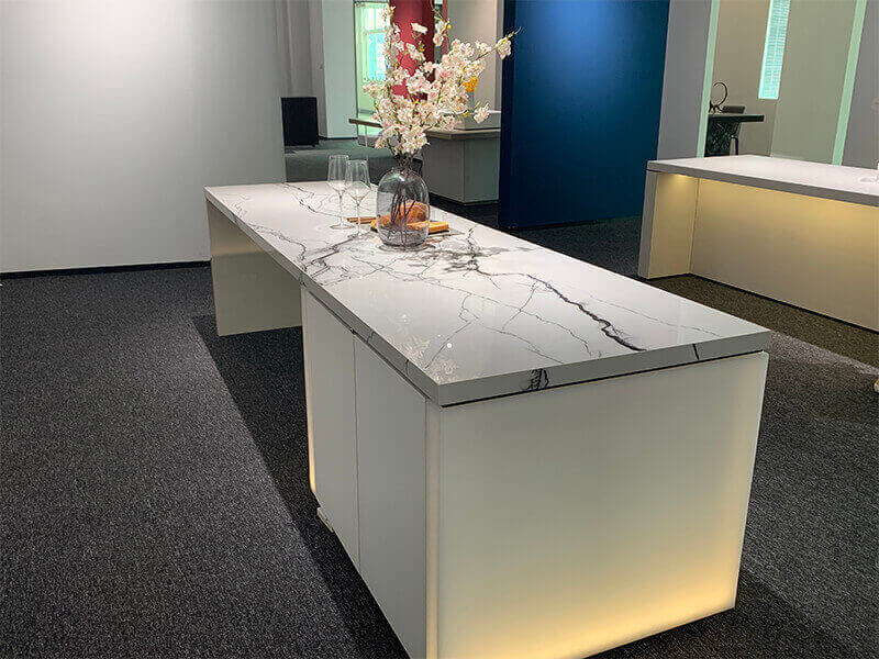 White Sintered Stone Top With Black Pattern Kitchen Island Table And Tea Table