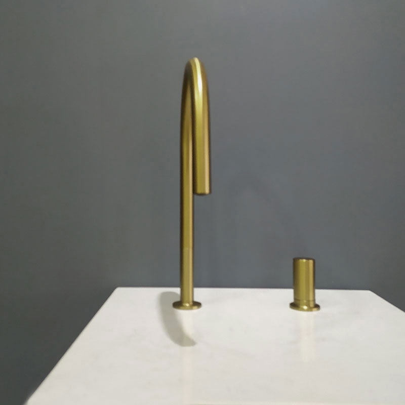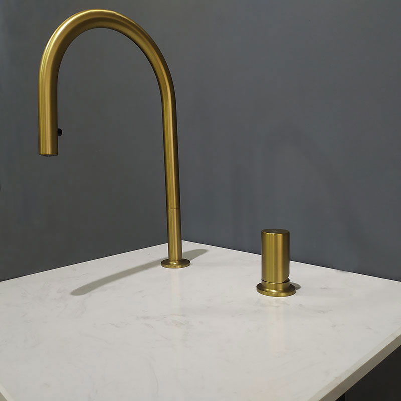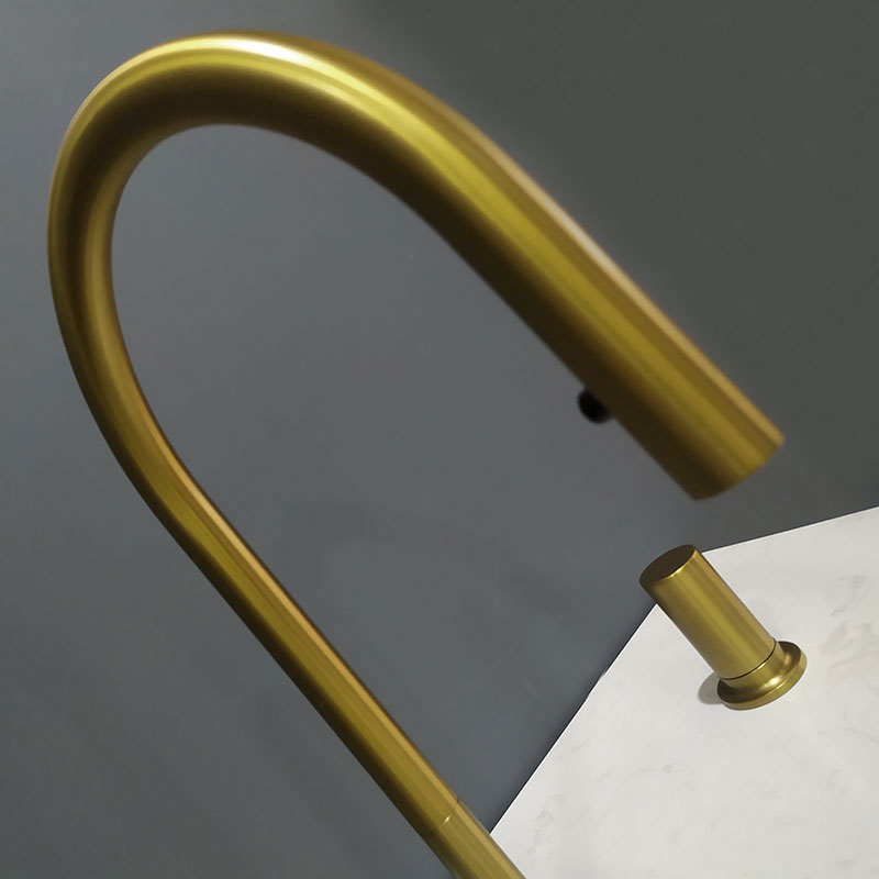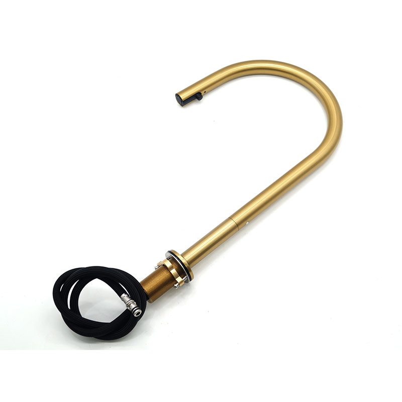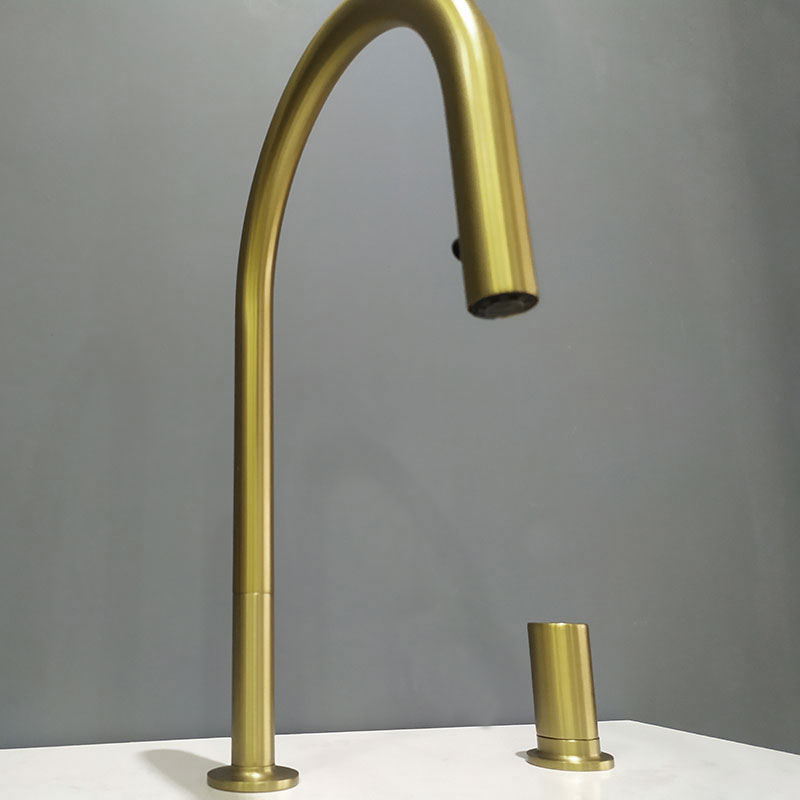 Brush Gold Pull Down Kitchen Mixer Hidden Sink Double Hole Cupc Commercial Brass Kitchen Faucet
